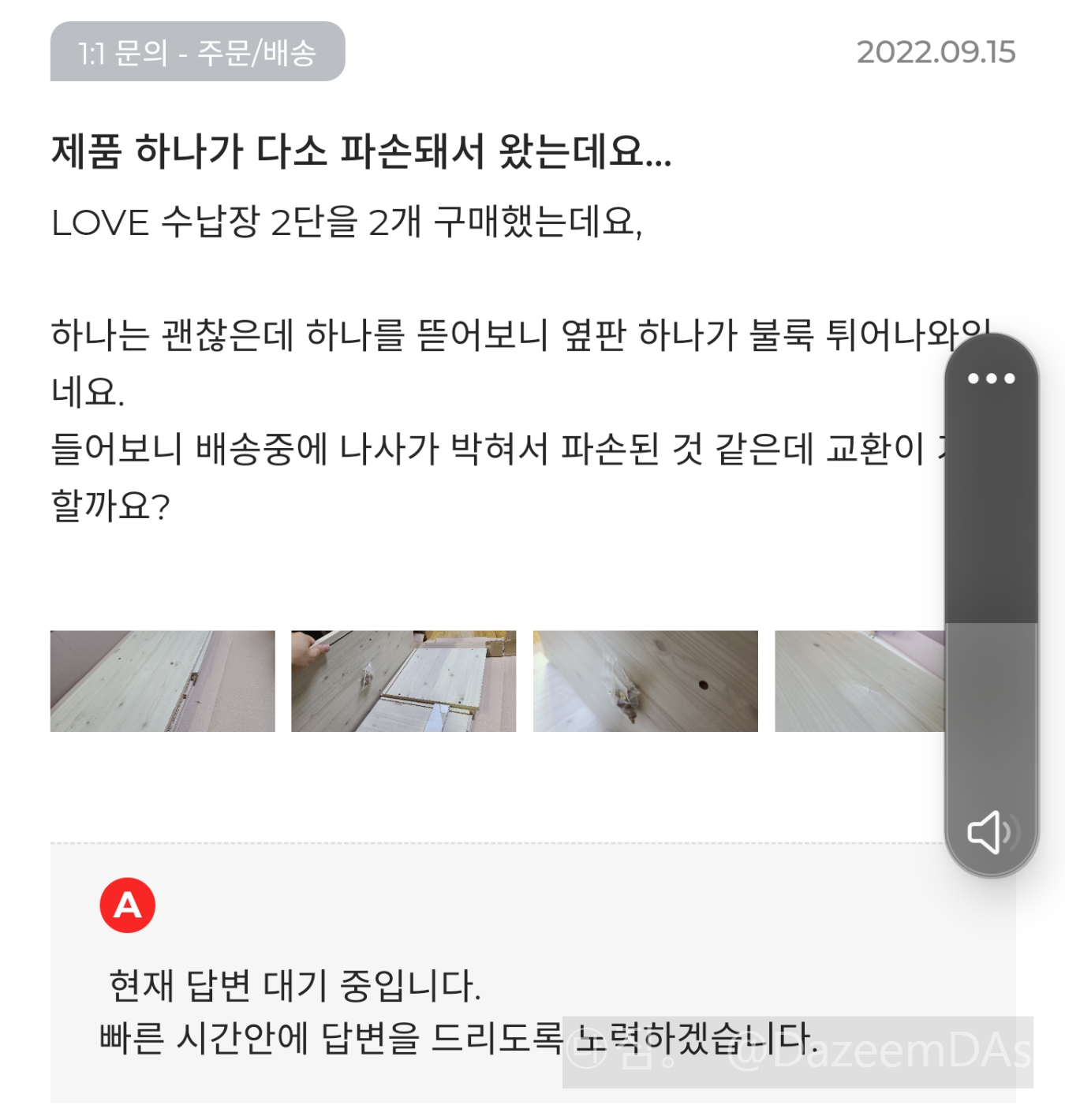 일단 저기 책장을 올리는 건 포기하고 교환 신청을 합니다.