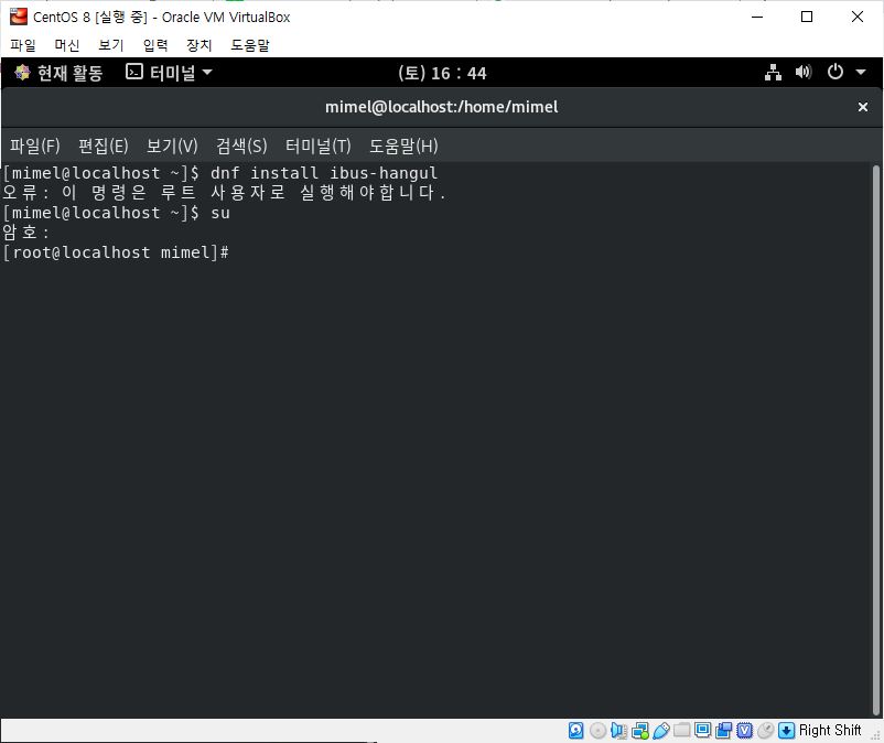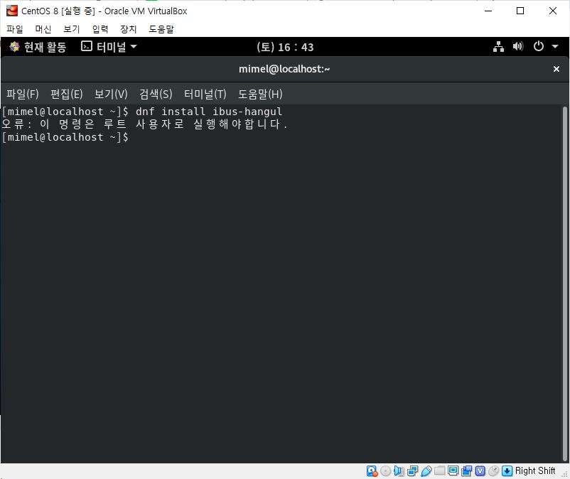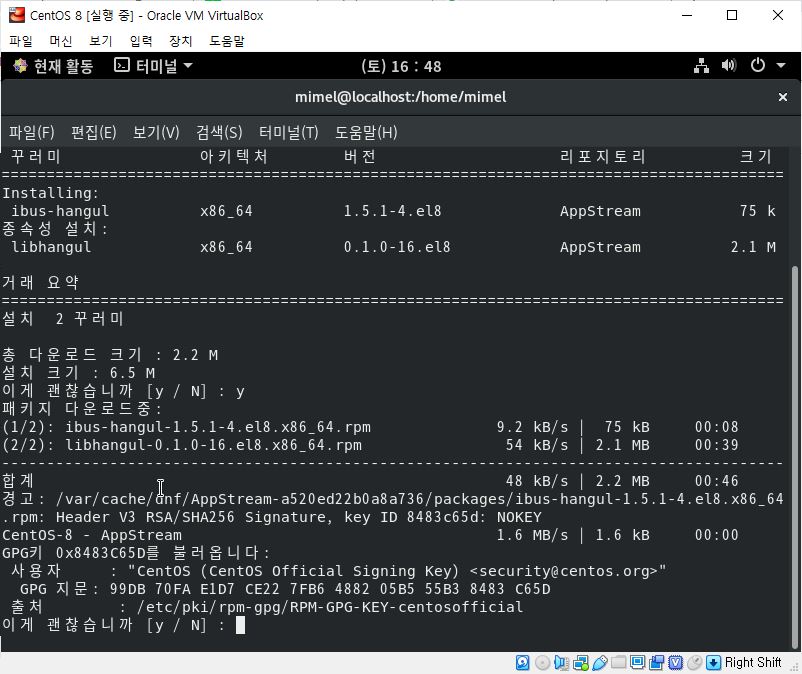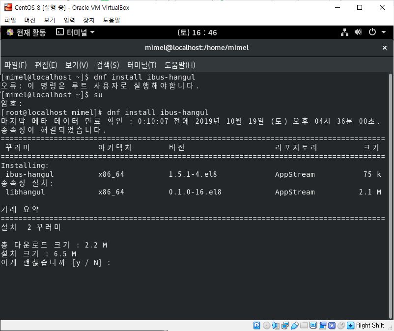 그럼 여기서 방금의 키워드(dnf install ibus-hangul)를 입력하면