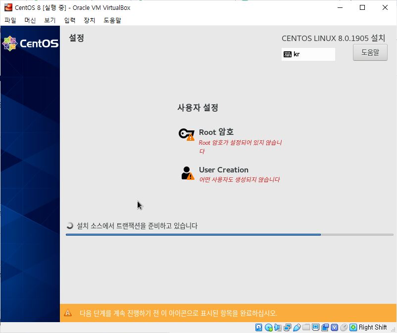 설치가 진행되면서 사용자를 설정하게끔 한다.