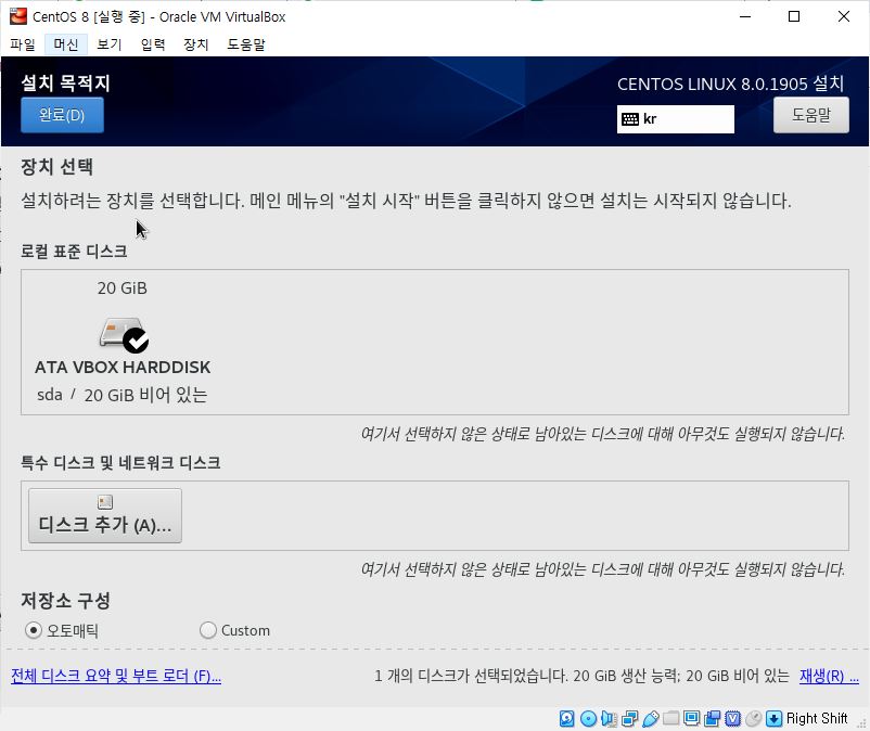설치 목적지는 더 간단한데 그냥 클릭한 다음에 바로 완료만 누르면 된다.