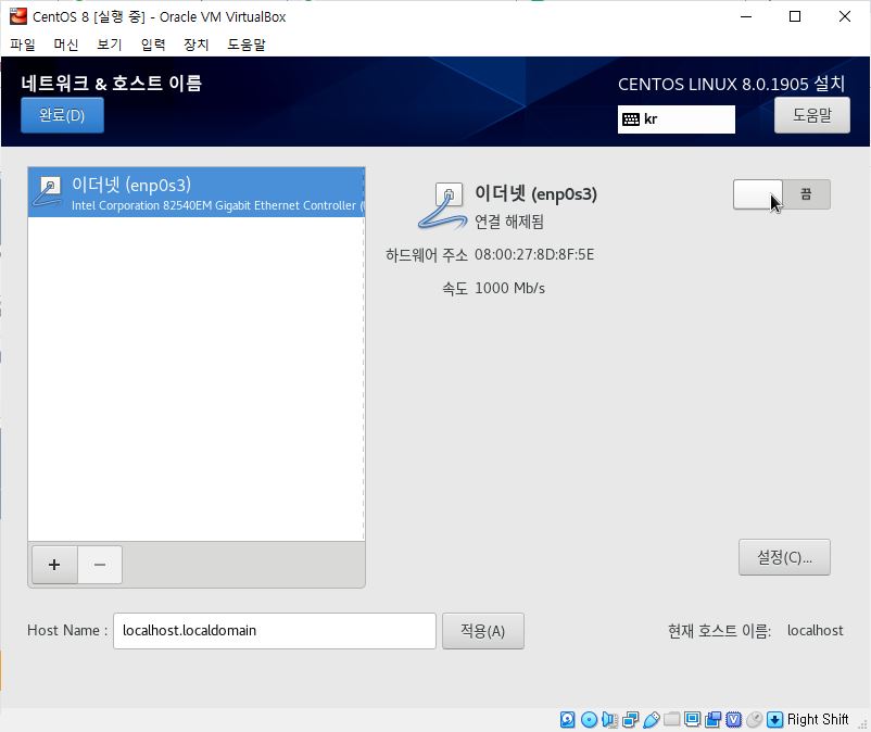 네트워크는 오른쪽 위의 끔만 눌러서 켬으로 바꿔준다