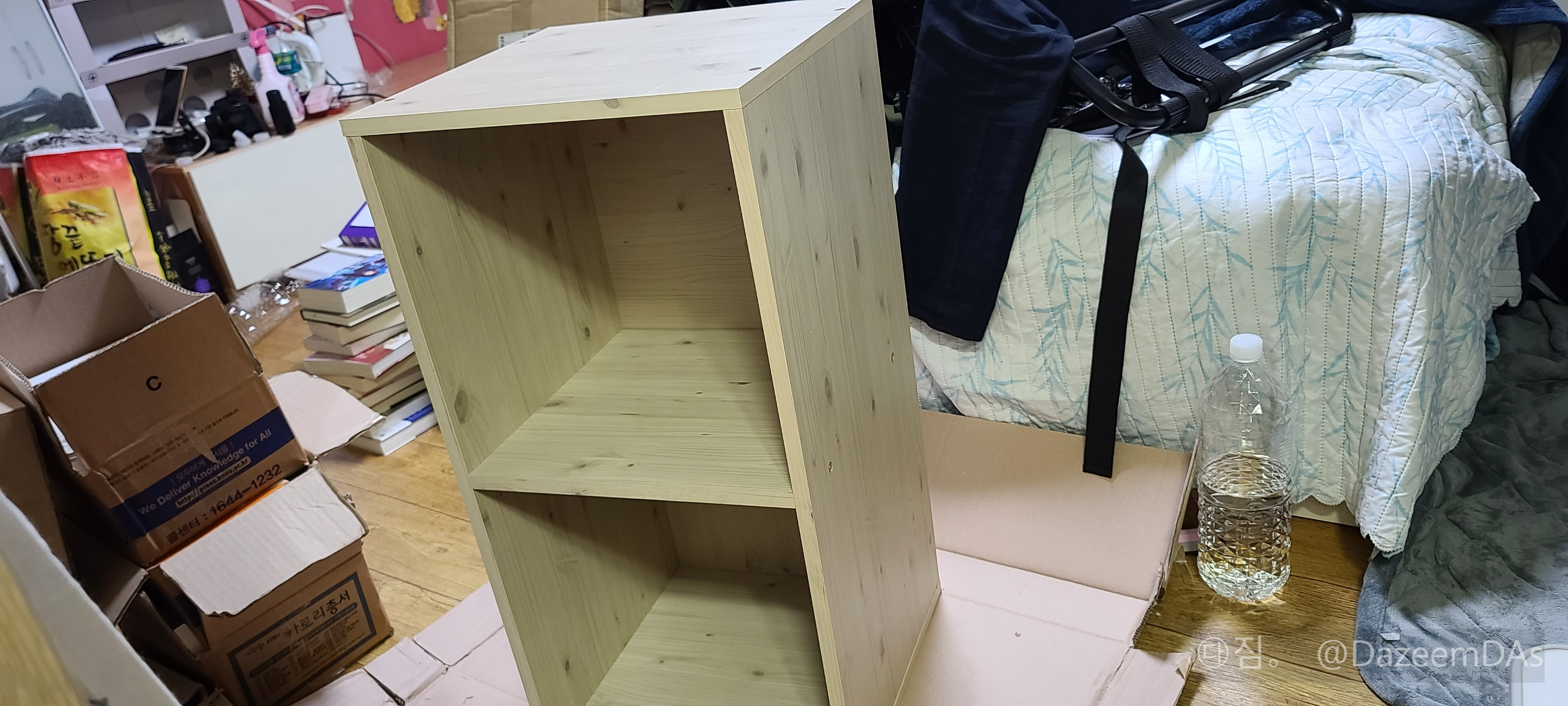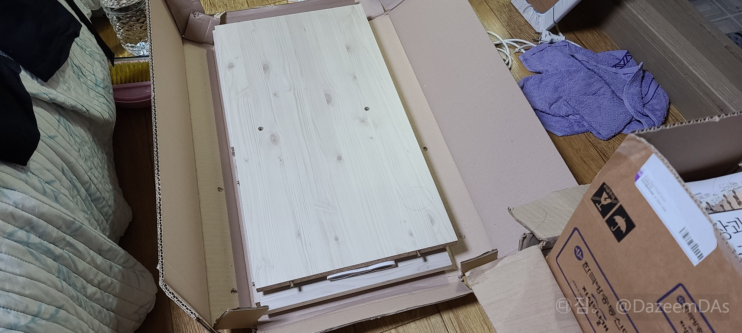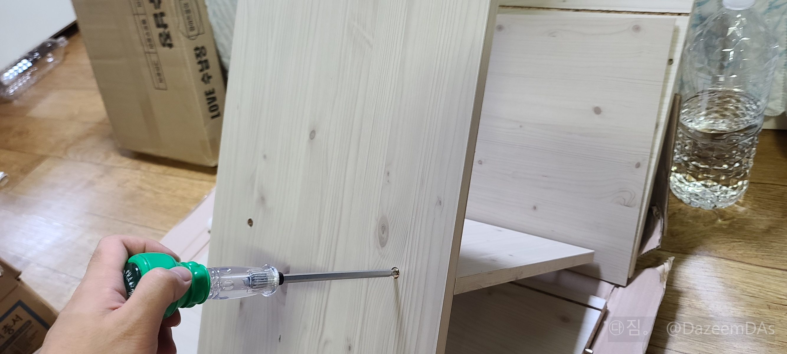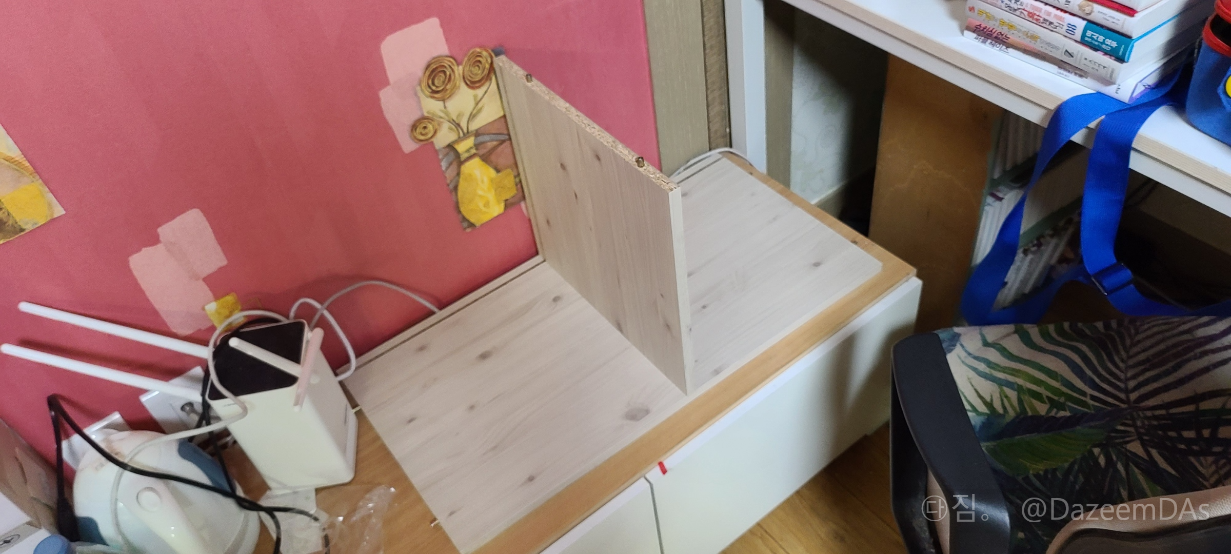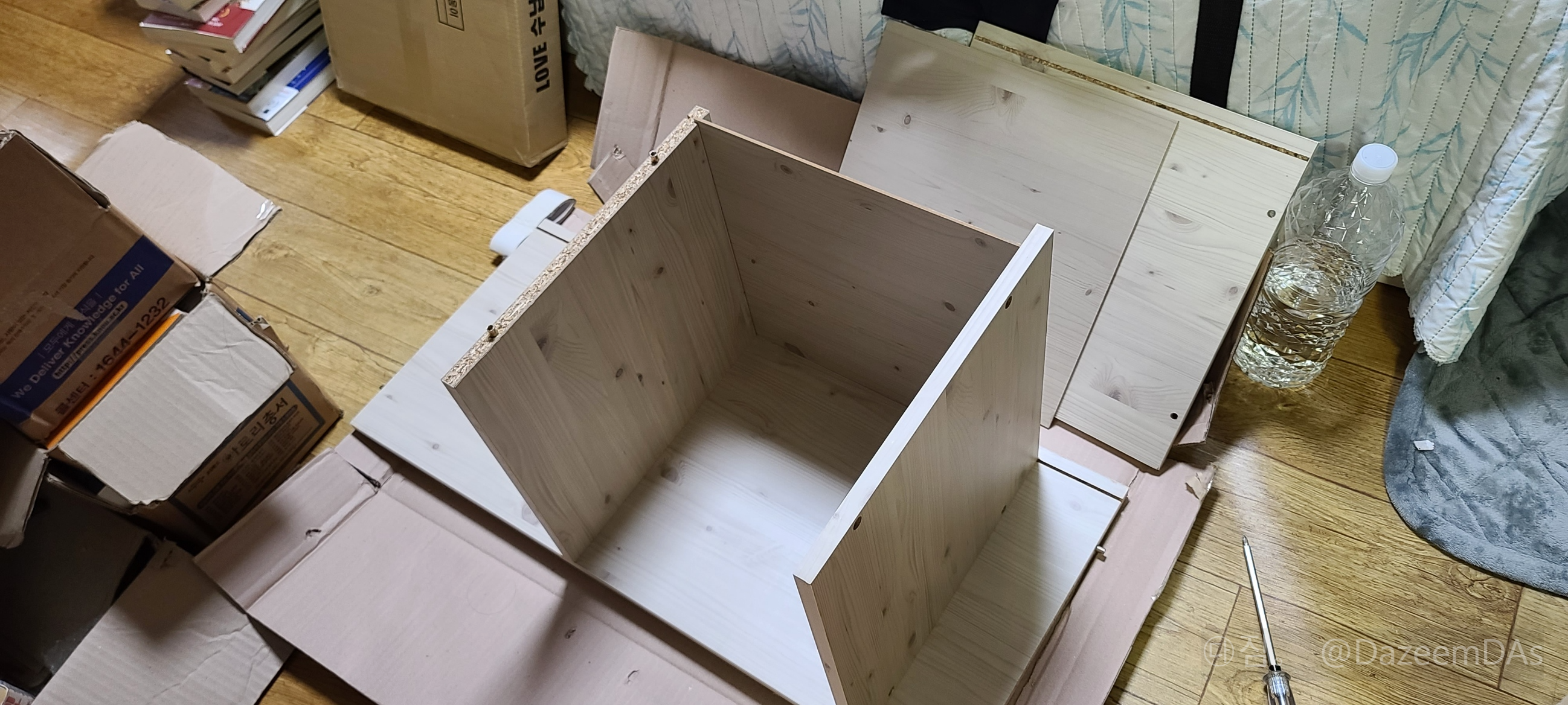아랫판을 조립했는데.. 이 순서로 조립하면 뒷판을 못 끼우네요.
