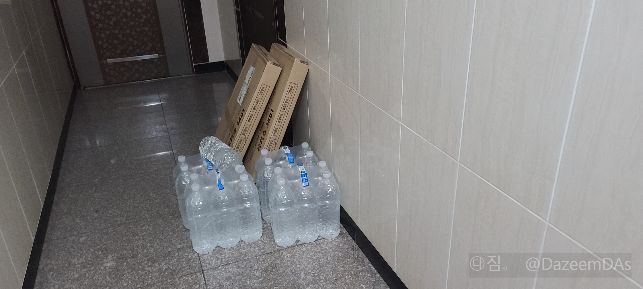따로 주문한 생수와 함께 가구가 도착했습니다